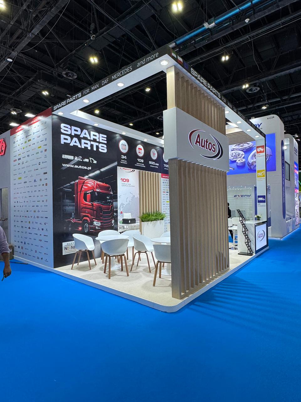 Autos to jedna z największych firm handlowych w Polsce, specjalizujących się w częściach do samochodów ciężarowych i wyposażeniu warsztatów. Dla Autos stworzyliśmy nowoczesne, funkcjonalne stoisko w charakterystycznych biało-czarno-czerwonych barwach.